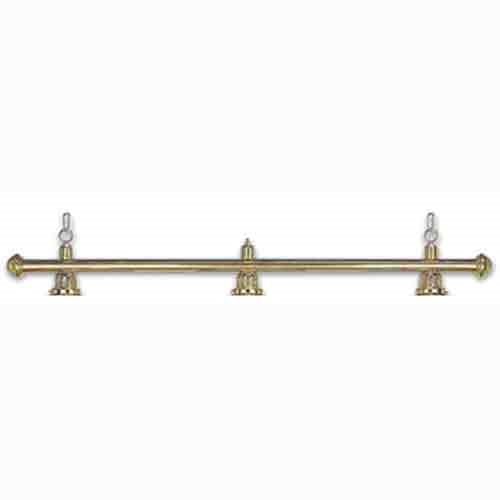 Messing lampe stang med plads til 3 metalskærme. Der medfølger 2 stk kklder til at ophænge lampestangen i samt 2 loft rosetter, til at hlæge kæderme i og til at skjule ophængs krogen der er monteret i loftet.