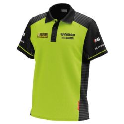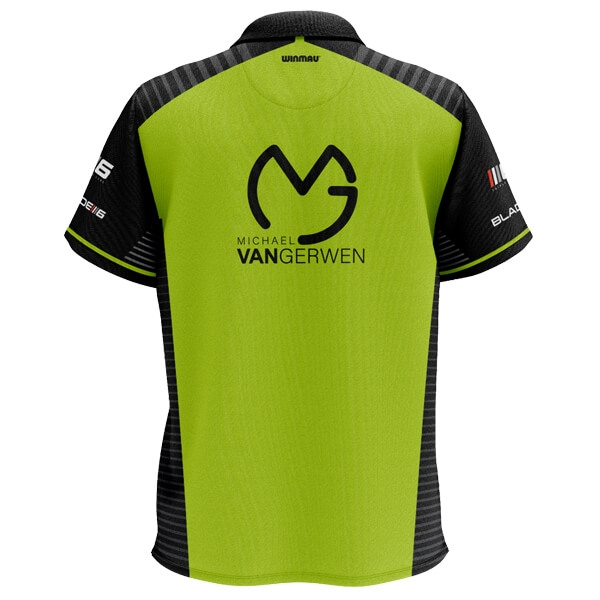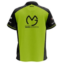 Michael van Gerwens officielle trøje som han bruger i alle TV-turneringer Inkl. sponsor- og MvG-logoer (Sponsorlogoer kan variere fra billedet) Findes i 7 forskellige størrelser; S, M, L, XL, XXL, XXXL, XXXXL Trøjen er fremstillet i dry-fit polyester. Ca. brystmål til de forskellige størrelser: S - 100-106 cm M - 107-111 cm L - 112-116 cm XL - 117-124 cm XXL - 125-132 cm XXXL - 133-137 cm