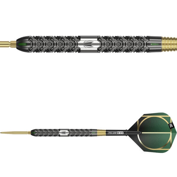 Pilene er lavet i 90% tungsten og leveres med Pro Grip EVO guld skafter, Cult flights og Swiss Point spidser monteret.