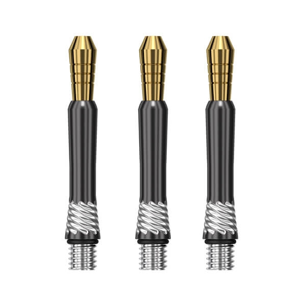 Sorte Titanium skafter fra Target Darts som passer til alle dartpile. Toppen (som er lavet i alu) på disse skafter kan udskiftes, så du ikke behøver at skifte hele skaftet hvis noget knækker. Toppene kan fås i flere forskellige farver. Skafterne har udfræset fingergreb i bunden, som sikrer at du kan have ekstra greb hvis du har en eller flere flere fingre placeret på skaftet når du kaster. Længde 34,8 mm vægt 2,0 gram