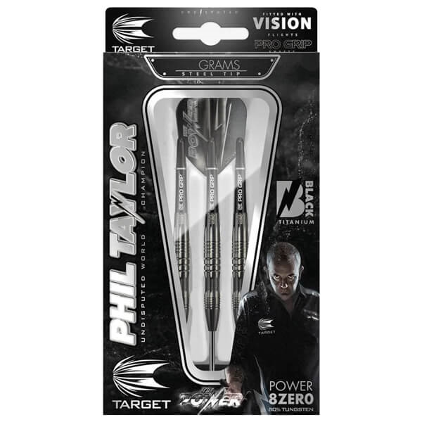 Phil Taylor 8-Zero Dartpile i 80% Tungsten med sort titanium coating.